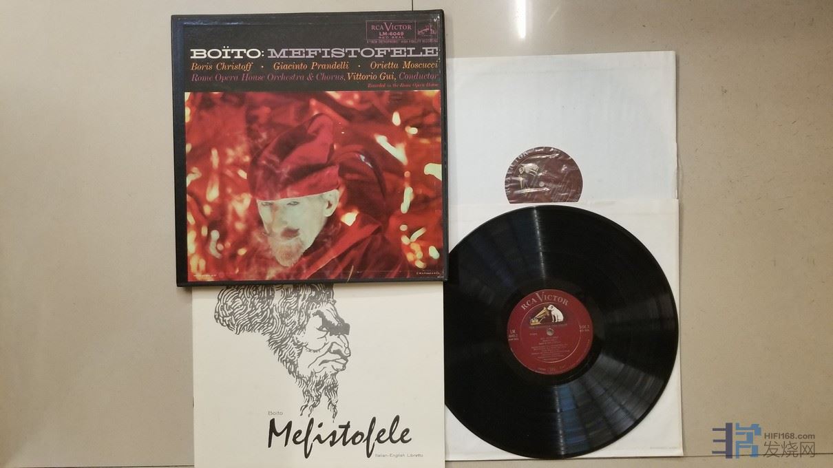 维托利奥·奎 指挥罗马歌剧院管弦乐团及合唱团,鲍里斯·克里斯多夫、贾辛托·普兰德利、奥莉塔·莫斯库奇 等演唱《博伊托 梅菲斯托费勒》(2LP),美国RCA单声道,阴影狗厚盘头版,2张唱片NM-,99元