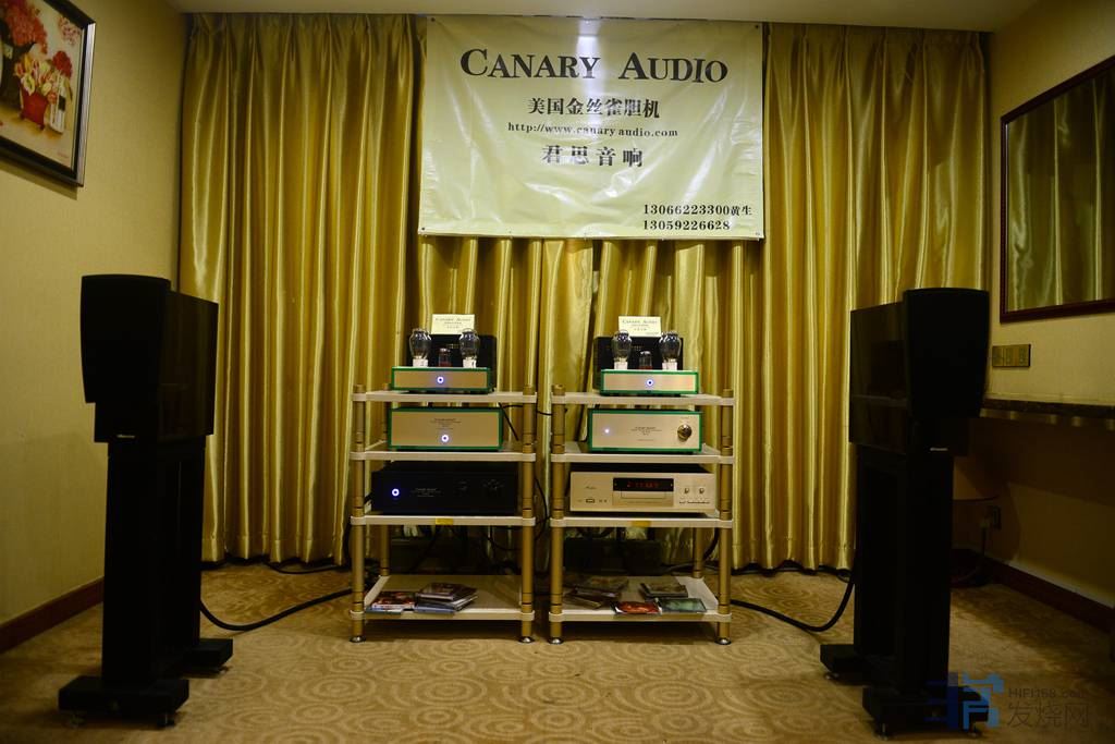 系统为3路3单元倒相式落地式扬声器, 选用世界知名品牌的丹麦Scan–Speak顶级喇叭、德国AccutonCELL陶瓷振膜喇叭单元。本次活动携同美国金丝雀CANARY AUDIO胆前、胆后功放进行向观众演示, 欢迎莅临参观指导。