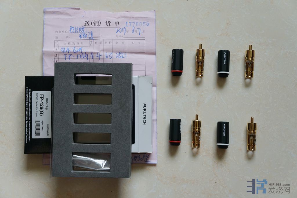 出日本古河FURUTECH FP-126G 镀金 RCA插头 ,原装行货 ,假一罚十,品相新(实物图),刚买来半个多月,上过一次锡,现升级镀铑出,有原包装盒和票据,1(已出)
