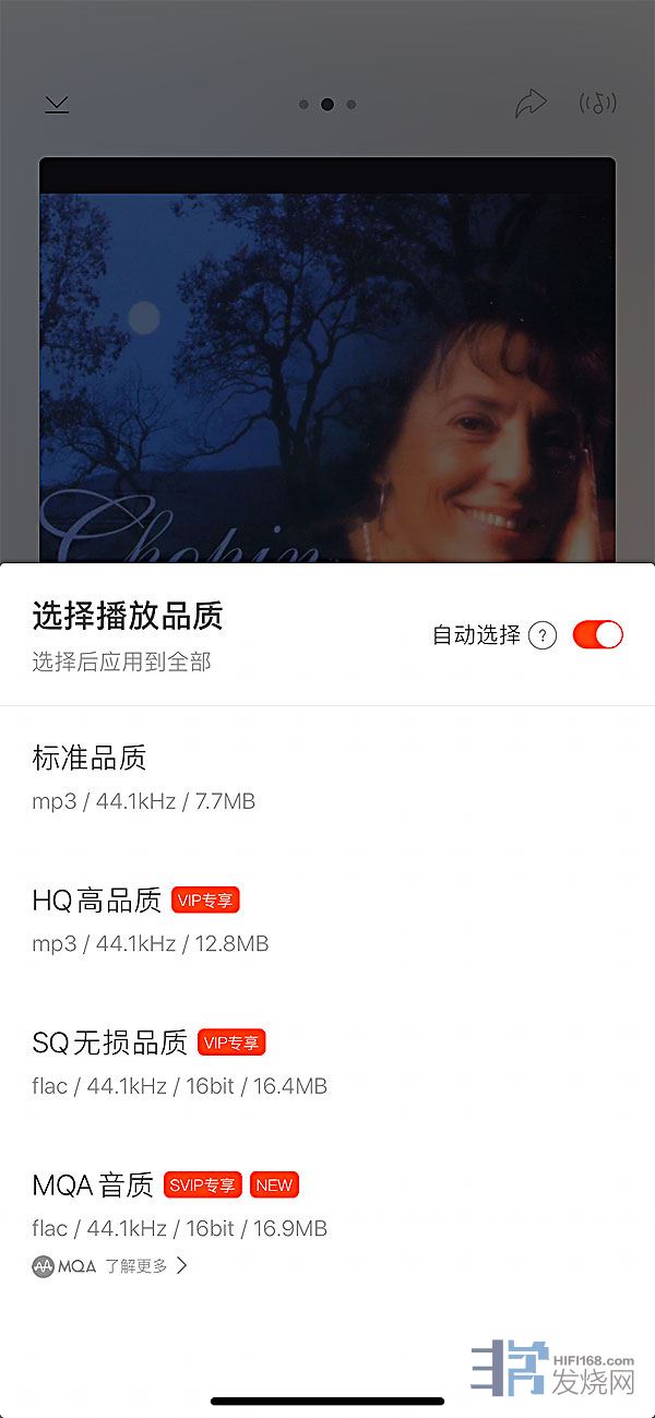 有多种品质选择,MQA要SVIP会员才可以享用。