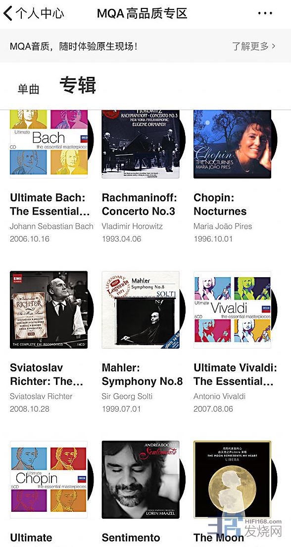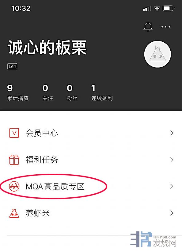 在个人中心界面,非常贴心的有MQA音乐专区。