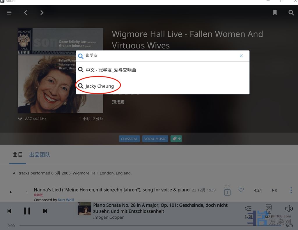 对于中文歌手的搜索,先直接用中文在ROON里面尝试,或者去百度英文名字, 然后搜索.