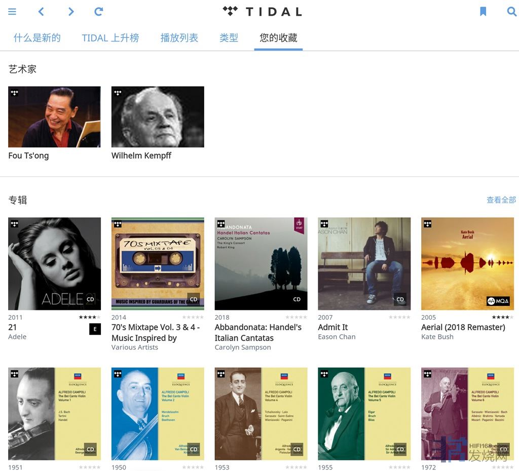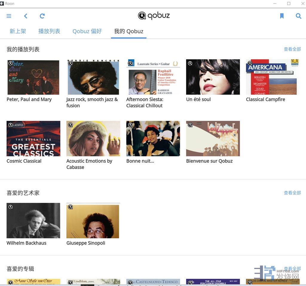 无论是Tidal还是Qobuz,在ROON的收藏是和APP同步的,有些东西去APP收藏更加方便,例如艺人或者播放列表:
