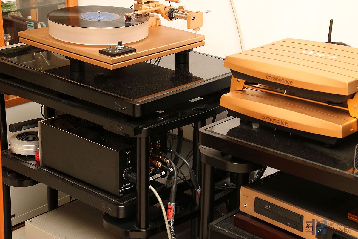 试听的器材包括有欧博air 1气浮黑胶唱盘、德国爱因斯坦唱放、欧博RDS1 + RDB1分体电池数播、麦丽迪WE2688前级、新德克20周年纯A后级、ATC 50扬声器。