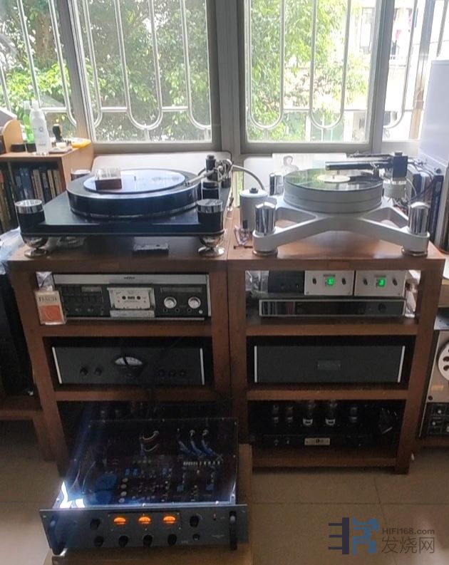 武汉烧友来广州玩,带了三张古典黑胶,过来试听菲凡黑胶系统,试听了惰轮气浮唱机(AB51S支点唱臂)和T233气浮唱机(A181旗舰气浮正切唱臂),唱放:菲凡PH TUBE旗舰电子管全平衡唱放,唱头:奔驰WOOD MC唱头,多谢支持!