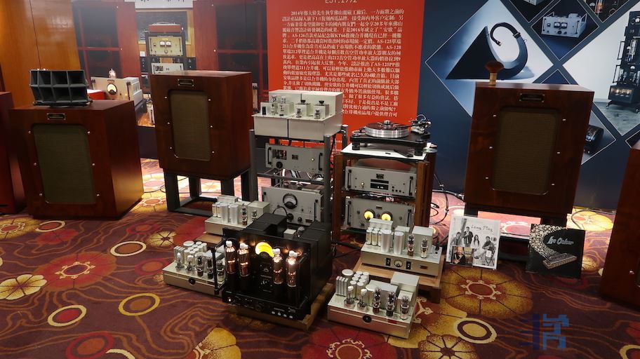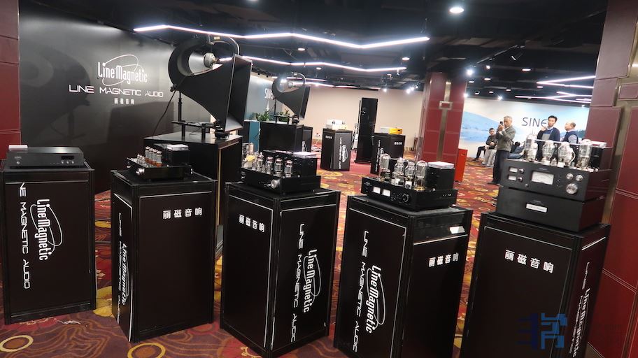 今年广州音展中国大酒店新开辟了地下负一层的展区,偌大的负一层将会有多少品牌在这里呢?Only one。放眼望去只有丽磁音响(佛山丽磁+珠海丽磁)。但就这一个国产胆机品牌。在庞大的负一层空间里几乎建起了个电子管扩大机博物馆。各类型的电子管机器组成了强大的阵列群。不同板块搭配不同的后端音箱,以大口径号角为主。声音方面,由于负一层大平层的相互干扰,说实话无法得出准确清楚的判断。不过以以往丽磁展房的声音表现而言,水准都是相当不错的。