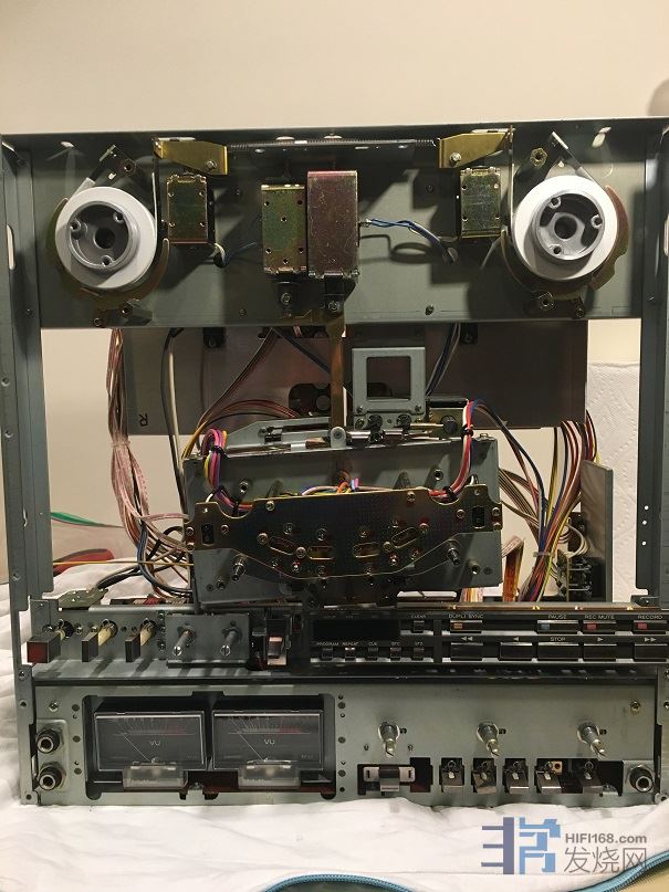二月二十八日我在211楼提到,我玩黑胶这么多年,倒是一直暗恋开盘机,一定要哪一天在发烧不归路上再前一步玩开盘机。没有想到美梦这么快成真。过去四个星期一直在修复一台白拿到手的开盘机,今天终于完工。没想到这篇分享一月份从黑胶开始,四月底要由开盘机结束了。四周前有人登广告让人免费白拿一台有故障的日本第一音响Teac X1000R 的开盘机。这可是八十年代初Teac 家用型开盘机的旗舰产品。 于是第一时间决定开车单程一个多小时去拿了回来。到手一看,品相非常新,还在三十几年前原厂的纸盒里,用的不多,但是数十载不用,已不知是什么故障,机器不转。