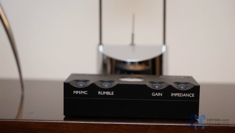 第三个按钮是Gain,分为MM唱头与MC唱头二组,MM唱头增益从21dB到42dB,MC唱头增益49dB到70dB(平衡输出大6dB),保证所有唱头都够了。在此我建议,增益不要用到最大值,顶多是在最大值下面一档,这样一来增益够,声音饱满,而且也不会有太粗的声音或接近失真。最后一个按键是Impedance,这是用来搭配MC唱头负载阻抗的。如果您切在MM唱头档,阻抗就会自动订在47k欧姆,不会变动。如果是MC档,阻抗值才会变动。