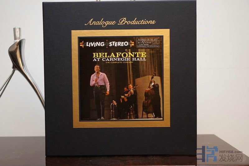 当我听「Belafonte at Carnegie Hall」那五张唱片45转板时,我发现Huei的音场宽度、深度、层次表现真的太棒了,这种表现能力就算是二、三十万的唱放也未必有这种水平啊!Huei把现场的空间感表现得非常好,而且观众与Belafonte人声的丰富性、尾音清晰程度表现得棒极了。更棒的是Huei把这张唱片唱得活灵活现,也就是充满音乐活生感,那种饱满丰富的中频、低频包围感,真的会让人宛若置身现场。