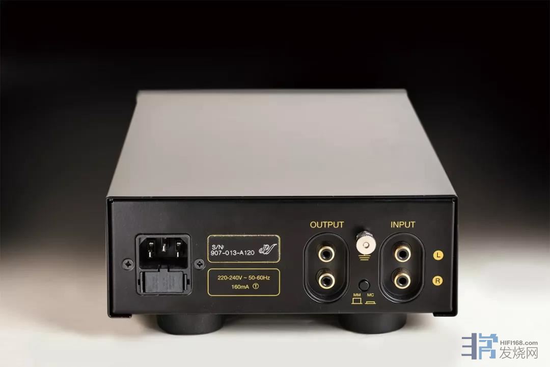 这些年能感受到这种冲击的唱头放大器再无其他。在唱片用剪辑设备等专业用器材的开发领域知名的英国出身的Tim de Paravicini 主持的EAR推出的半尺寸的小型电子管式phonobox。唱头电路使用3根双3极管13D16,MC输入奢侈地使用了Paravicini自己设计的定制环形升压变压器。在本机的上方有比镀鉻更加奢侈的高级端子的豪华型,这里测试标准型的MM/MC Black。