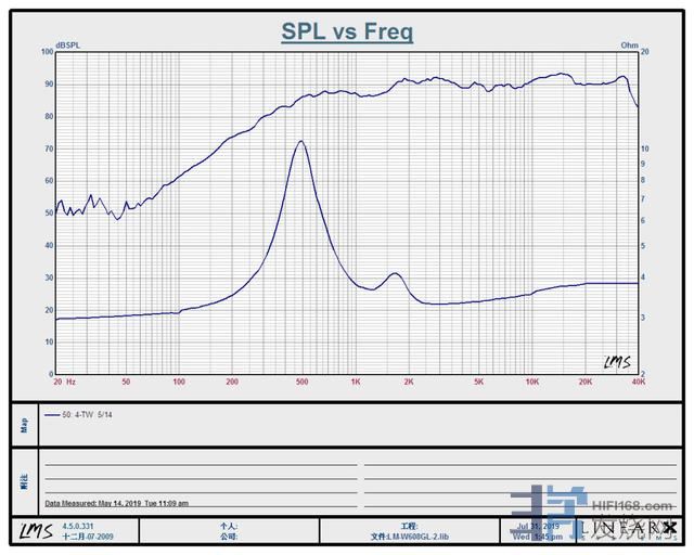 同时,它的谐振频率为500Hz,频响范围500-40k,这些指标在高音单元中是非常少见的(软球顶高音我还不知道有其它家)。而且频率响应非常的平坦,在1.5k-12k Hz的波动在+/-2db之内,总体在+/-2.5db之内,高频延伸至35k之后才开始衰减,总体频响范围500-40k Hz。