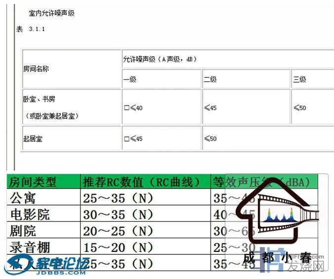 411 卧室、起居室()内的允许噪声级,注意看,此标准是A计权,从前文可以得知,A计权对超低频是大幅度削减的;所以基本是只测量除超低频以上的全频段的噪声音量;一般在检测空间噪声时都是用此标准;