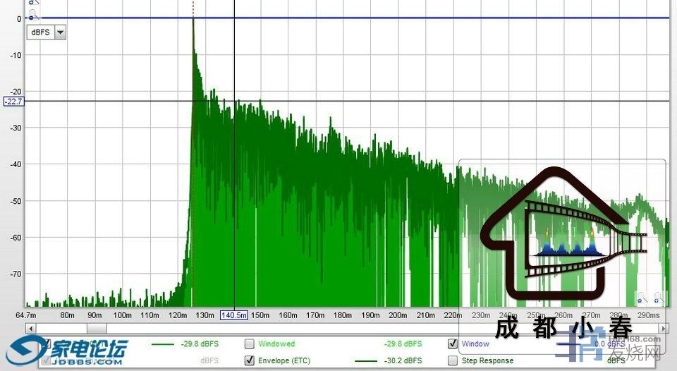 软件实测值参考:125毫秒开始到140毫秒时衰减22.7DB;