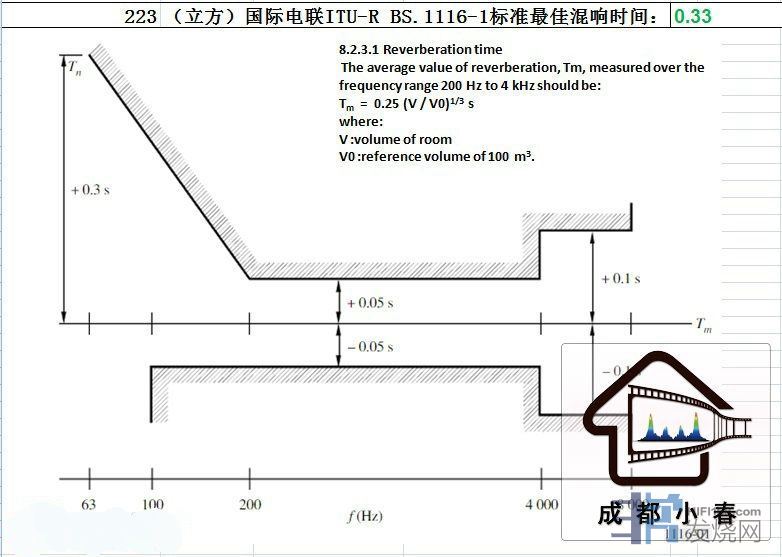 国际电联ITU-R BS.1116-1标准223立方米最佳混响时间: 0.33