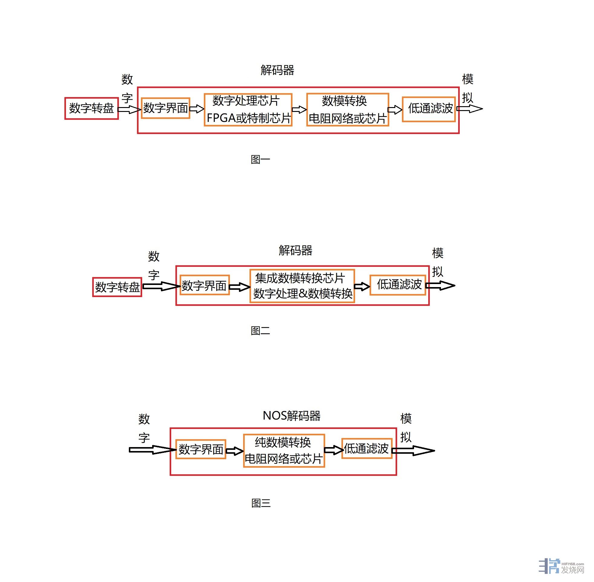数字音频目前由数字到模拟一般经过:存储、读取、传输、数字处理(升频、滤波和噪声整形)、数模转换和低通滤波等过程。过去数字处理都是解码器中FPGA编程芯片或是专门特制的数字处理芯片完成的(图一)。随着集成芯片技术的发展数字处理都集成到解码器芯片中了(图二)。但是数字音频采样频率不同、采样模式不同量化噪声的特征是不同的,传统解码器中的数字处理选择比较少,有局限性。不能适应各种数字音频文件的处理。HQPlayer的出现彻底打破这个格局,软件发挥PC强大的计算能力进行数字处理,把过去解码器完成的数字处理工作让PC来做,不仅效率更高而且数字处理滤波选择也更多,会更好的适应不同采样频率和不同采样方式数字音频文件。既然PC完成这项工作自然解码器内部就不需要再处理一次了,解码器只专心进行数模转换就好,也降低了解码器内部干扰因素(图三)。