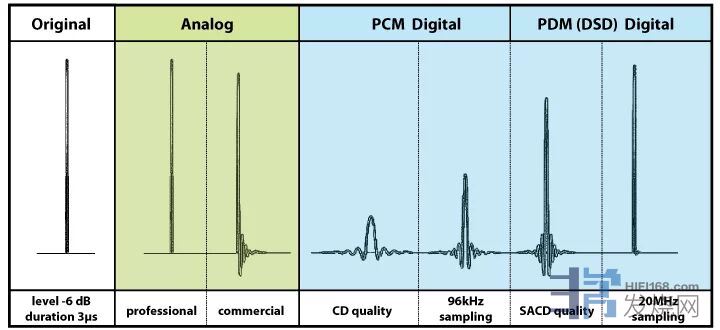 由图可以看出DSD采样信息量更丰富,高频DSD采样更接近模拟。这就是为什么要玩高频DSD的原因。完全的DSD回放是DSD录音、DSD格式存储和DSD数模转换。实际我们见到的SACD或dsf文件不一定是DSD录音,有的是PCM转制的。对应解码器要求更是高,很多解码器是兼容DSD数模转换,一方面不完全是DSD数模转换,另一方面即使是DSD数模转换,低通滤波线路是针对PCM设计的,DSD有效信号被滤掉了。更不用说功放和音箱了,很多频段已经失真了。能说你听到的是DSD音频吗?