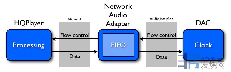 HQPlayer需要高性能电脑,但电脑的干扰、噪音和外观都不宜和播放设备放在一起,通过NAA双机播放可以很好解决这些问题,并且获得意想不到的效果。HQPlayer电脑通过局域网网线或光纤连接NAA电脑,实现远距离放置隔绝了运行噪音,播放区域设备简洁。网络传输可以不共地,网络RJ45接口都标配数字隔离变压器,可以隔离绝大部分电脑运行的电磁干扰,如果中间一段通过光纤传输可以彻底隔离HQPlayer电脑端的电磁干扰。没有必要大费周折特制什么静音电脑。NAA端系统有中继数据缓冲作用,可以大大降低数据抖动。NAA电脑可以选择低功耗电脑或是开发板,系统简单、干扰少、供电好处理。HQPlayer电脑和NAA电脑可以取长补短珠联璧合,发挥各自的优势。所以NAA是HQPlayer高品质回放的标配。
