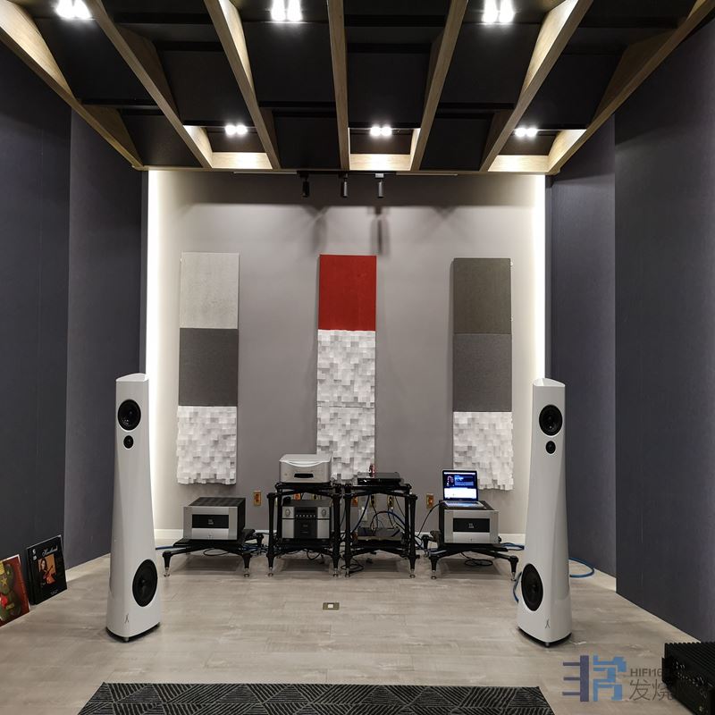 (喇叭摆位受制于屏幕宽度,侧墙扩散板位置不对,整套系统搭配过于注重hifi性,所使用的扩散板也不是真正的二次余数扩散板)