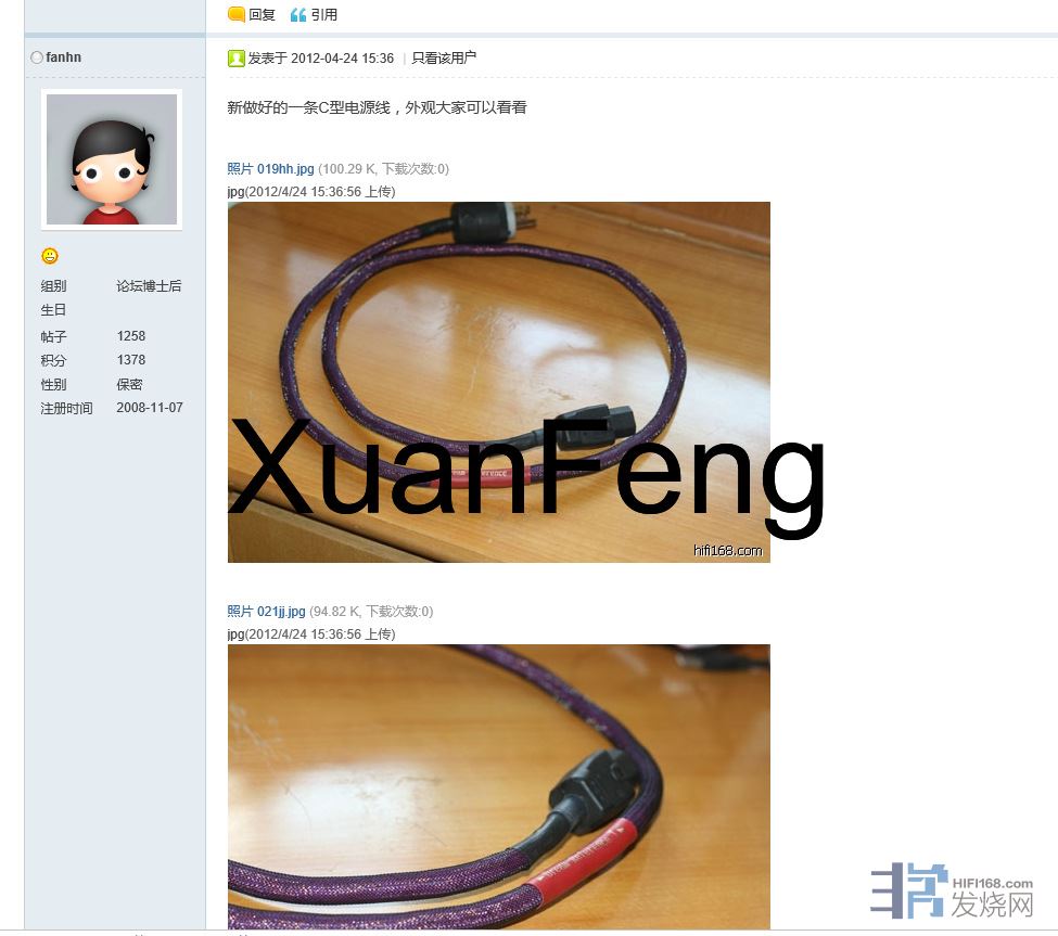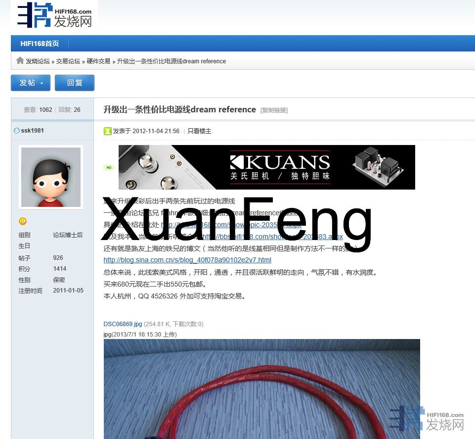 此线乃非常网宁波高烧范生早年DIY的作品 在168论坛当时好评如潮 性价比卓越 由于线基有限 所以范生做完一批之后就没有再有出品 当年售价在700样子 而下面图片则给出当年很多老烧的试听分享 包括铁饭等人的一致好评