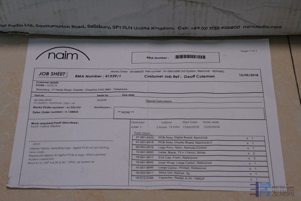 低价出英国茗/Naim uniti多功能功放. cd机 .解码一体机,机器编号: 30多万号,已升级最新固件(中文菜单),收自英国一手用家机器,上家2018年在英国原厂保养过(图3原厂保养单),机器品相极新(看实物图,机器无磕无碰,只有底部靠近前端一小点极轻微划痕,基本可忽略,看底部图),现在机器状态一流,功能全部正常,无暗病,cd读碟秒杀,机器买来一年左右(无修摩过,盖子没打开过,连一颗螺丝都没动过),有原包装.说明书.原厂保养单.电源线.碟镇.遥控器,现在准备升级,(已出)