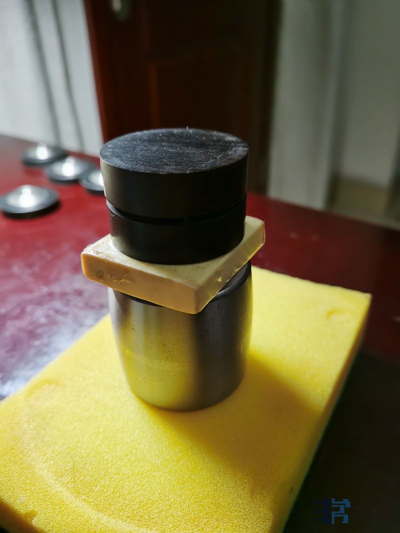 该前级机脚为3只圆柱形机脚,前二后一,实心铝合金材质,直径40毫米,高度25毫米,重77克,用螺丝钉固定在机箱底部。