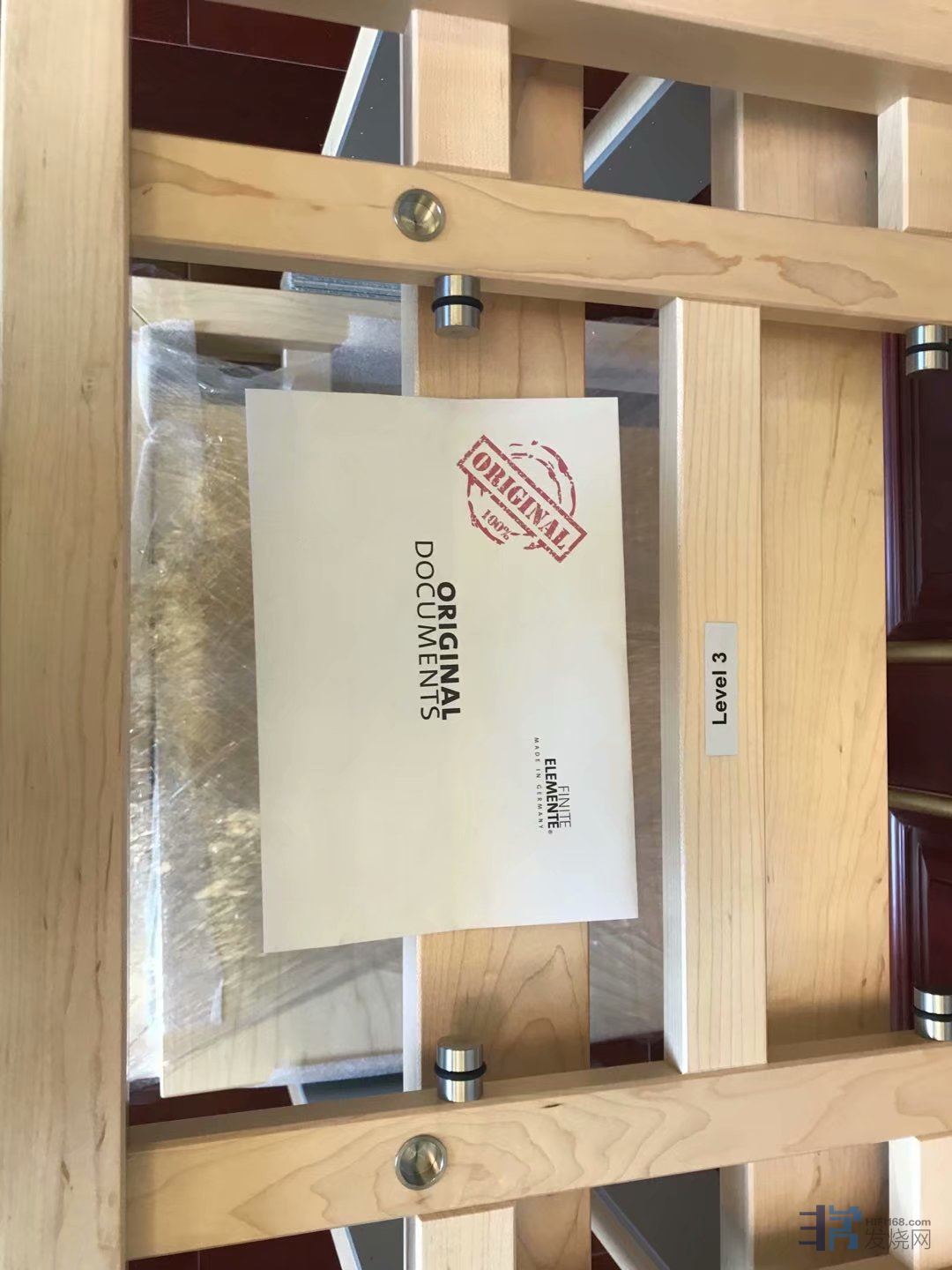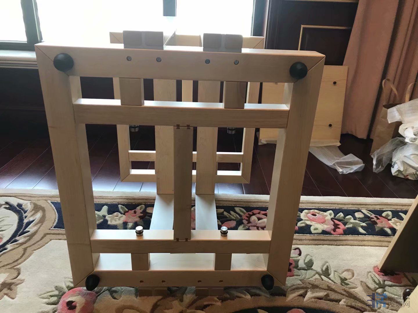 这期间我朋友北方再次偶然在闲鱼上看到上海烧友有出二手原装参考系列HD02三层FE枫木原色机架(立柱包木),直接拿下,秒杀,上海烧友也是两套FE机架,一套德国原装FE三层机架,一套广州复刻的山寨FE三层机架,上海烧友告诉我朋友北方,山寨和原装外观接近,但是效果差距巨大,朋友北方因为运输费用问题,没有买山寨FE,只买了德国原装FE机架。