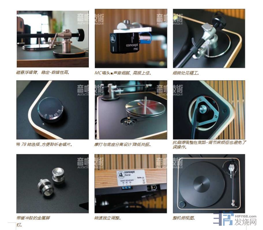 想对这台唱机的效果表达不同意见?估计有这想法的烧友只要看到价钱,都会重新考虑。据说Concept系列面世以来,一直处于"卖断市”的状态,厂家甚至划出生产专区,每天"两班制”开足马力,依然供不应求。作为消费者,当然是希望"花小钱,办大事”;而小弟更看重的,是品牌的操守和坚持,使得想玩黑胶又怕麻烦、怕搞坏、怕声音不够班的爱乐人士,可以大踏步迈入"黑”社会, 走进模拟音源的世界!