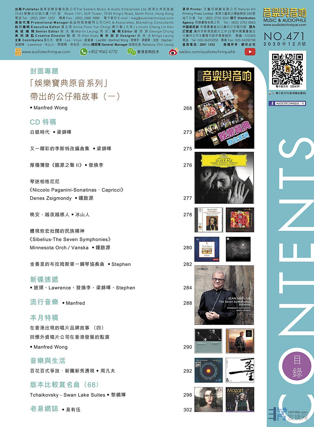 今期的音樂與音响封面專題 : 「娛樂寶典原音系列」帶出的公仔箱故事(一)。CD特稿 : 白銀時代《Silver Age 》Daniil Trifonov、 又一精彩的李斯特改編曲集 、厚積薄發《龍源之聲II》 、琴迷帕格尼尼《Niccolo Paganini-Sonatinas.Capricci》Denes Zsigmondy、晚安,越夜越感人《 Good Night 》Bertrand Chamayou、《Sibelius-The Seven Symphonies》Minnesota Orch./ Vanska 、金善昱的布拉姆斯第一鋼琴協奏曲 。其餘的最新碟評、音樂與生活、版本比較賞名曲、老易網誌 …等等欄目也是同樣內容豐富,記緊捧場啊!