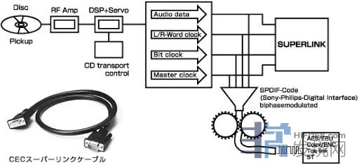 通用同轴数字输出和平衡连接所使用的SPDIF(Sony Phillips数字接口)方法是一个原则,因为该标准本身已经很旧,并且使用双相调制进行时钟编码,但存在致命的缺点,即不可避免地会产生抖动。CEC新近采用的Superlink,无需经过SPDIF编码即可分离并传输音频数据和时钟数据。通过在D / A转换器之前产生一个主时钟并安装带有内置超高速存储设备的数字数据同步电路,理论上可以将声音质量的下降降至最低。以这种方式实现的零抖动可以将皮带驱动CD转盘的安静性和高精度拾取的潜力完全传递到DA转换器,可以称之为“超自然声音”。