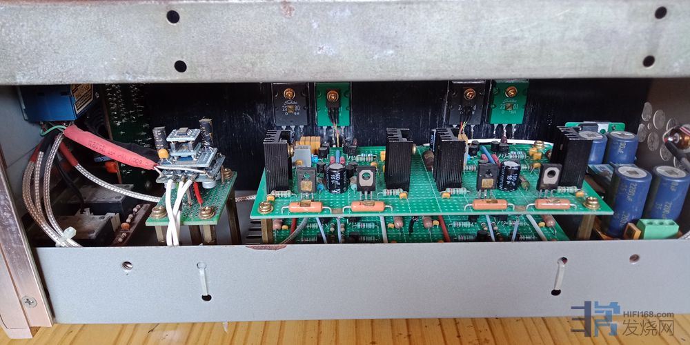 小功率管为16对飞利浦BC546/556,2对日立B647/D667;中功率管为6对日立B649/D669,大功率管为2对全新老装东芝A1301/C3280