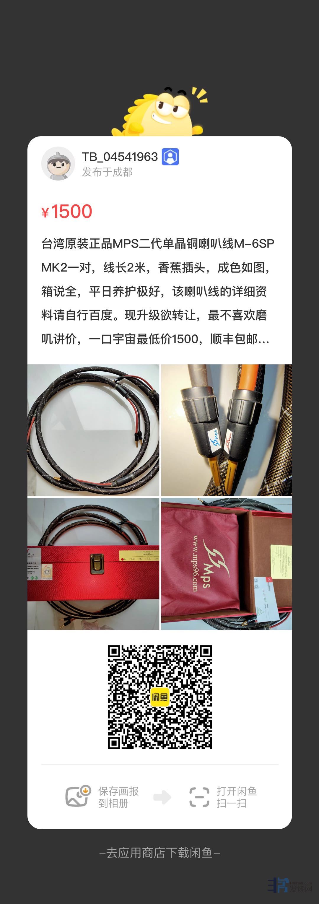 台湾原装正品MPS二代单晶铜喇叭线M-6SP MK2一对,线长2米,香蕉插头,成色如图,箱说全,平日养护极好,该喇叭线的详细资料请自行百度。现升级欲转让,最不喜欢磨叽讲价,一口宇宙最低价1500,顺丰包邮,需要的速来!