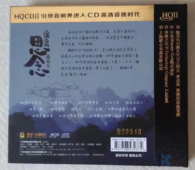 力潮唱片刚刚出版了腾格尔2022年最新专辑《遥远的思念》HQCD II,首版限量发行2000张,每张有独立收藏编号。