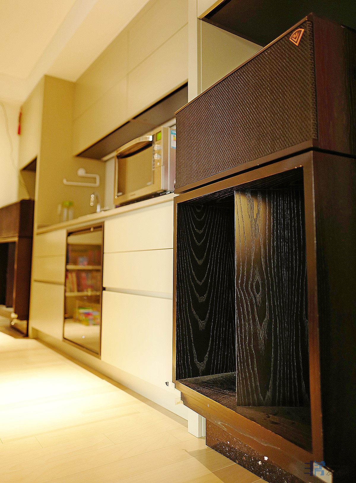 丽确的杰士客户,他非常热爱音乐,从家装风格可看出并非传统的发烧友,已把音响音乐融入生活空间了。