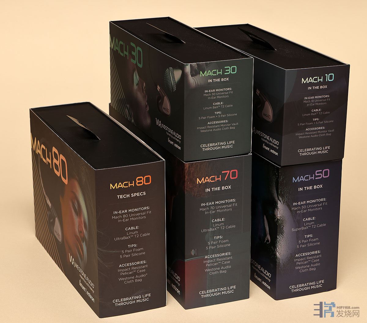 MACH"马赫”系列耳塞售价从MACH 10的1988元起,到MACH 80的11999元,涵盖不同消费水平。
