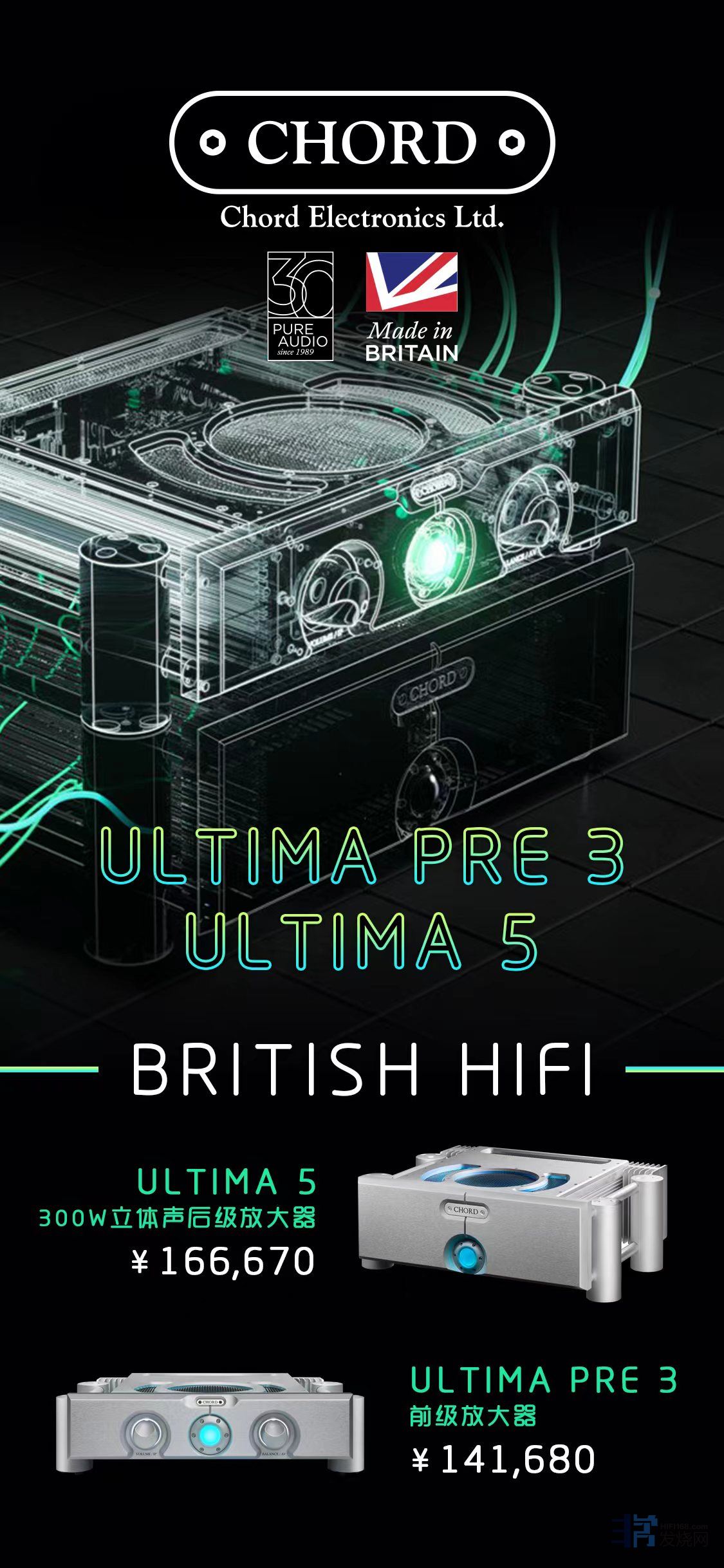 英国的 Chord 于 2020 年为庆祝三十周年推出了 Ultima 系列放大器,受惠于全新设计的低失真电源部份,最新推出的 Ultima Pre 3极低的噪声,加上出色的操作感,成功为此级别的前级放大器定下全新的标准。和旗舰立体声后级放大器Ultima 5搭配,在在8Ω负载条件下,拥有300W的强劲输出,Ultima采用全新的拓扑电路(circuit topology)设计,线路设计具备超低失真,能够即时反应并提供纯粹的超高输出功率,同时保持透明度,为音响系统提供强大的驱动力,带来惊人的动态与音乐性。