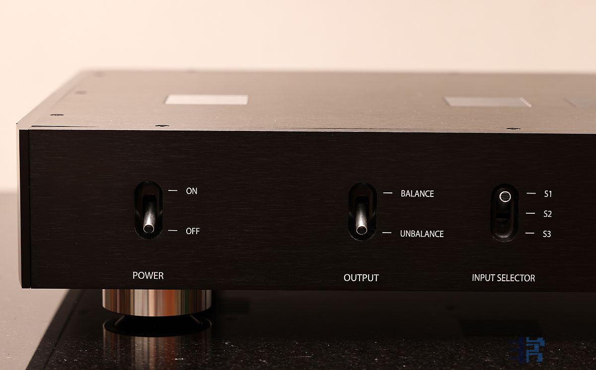 tt前级的面板非常简洁,就三排按键,分别是电源开关、单端和平衡输出选择、3组讯源输入选择。