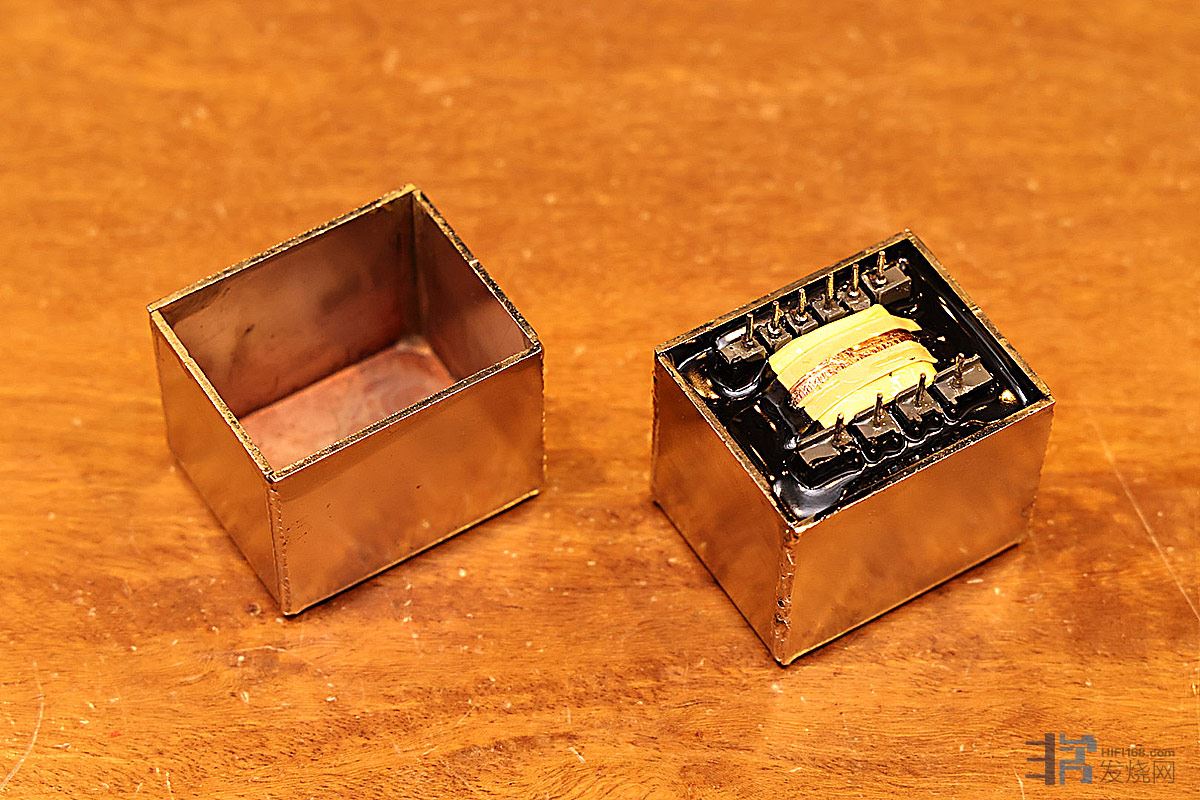 为了让变压器具有最佳的抗干扰能力,丽确的输入输出牛斗套上了5mm厚的金属屏蔽罩,这个屏蔽罩的工艺相当复杂。