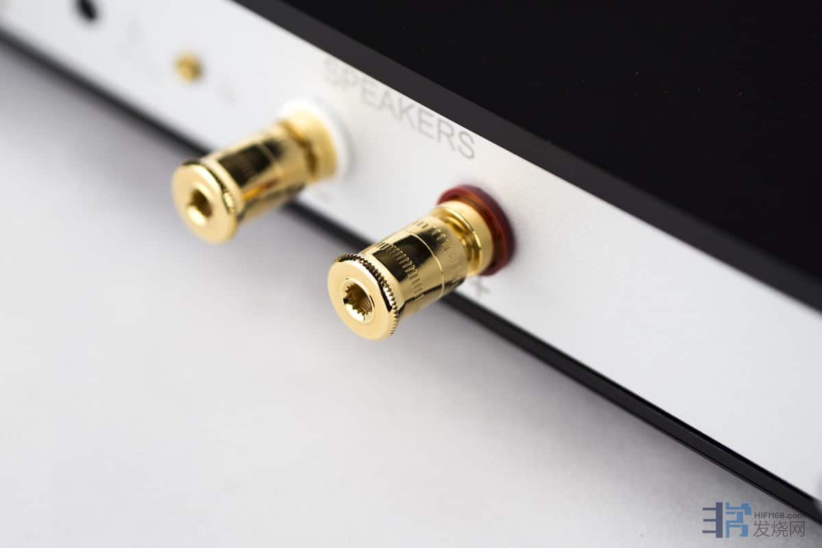 放大器配备漂亮的隔振锥脚,既能隔离振动,又能消除刮伤其他器材的可能性。进化一号有黑色或银色的外观处理可供选择。