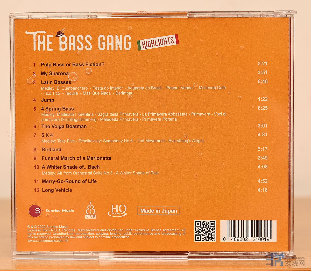 12首音乐有4首是串烧,以下试听的就是其中的串烧作品,唱片第3首《Latin Basses 拉丁牛筋》,里面串烧了9段轻松优美的拉丁旋律,曲目包括:ElCumbanchero击杯的人、Festado Interior 室内嘉年华、Aquarelado Brasil巴西之旅、PeanutVendor花生小贩、MoliendoCafé磨咖啡、TicoTico雀鸟、Tequila龙舌兰、Mas Que Nada无事一身轻。
