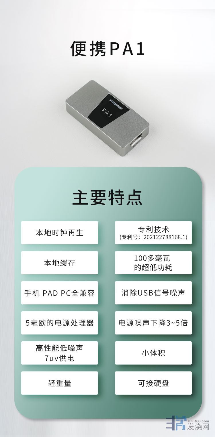 而PA1的方式是从源头进行信号本地缓存、时钟再生解决USB的时钟与噪声问题!