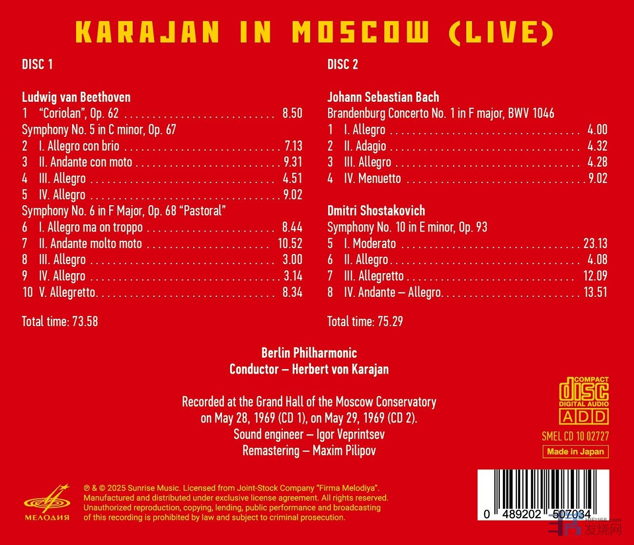 💿 LIVE IN MOSCOW. JANUARY 7, 1967 杜普蕾x BBC樂團莫斯科音樂會 (2CD)編號 :SMELCO1001087; Jacqueline du Pré 杜普蕾(Strad.,Davidov1712)/ Sir John Barbirolli 巴畢羅里, BBC Symphony Orchestra: