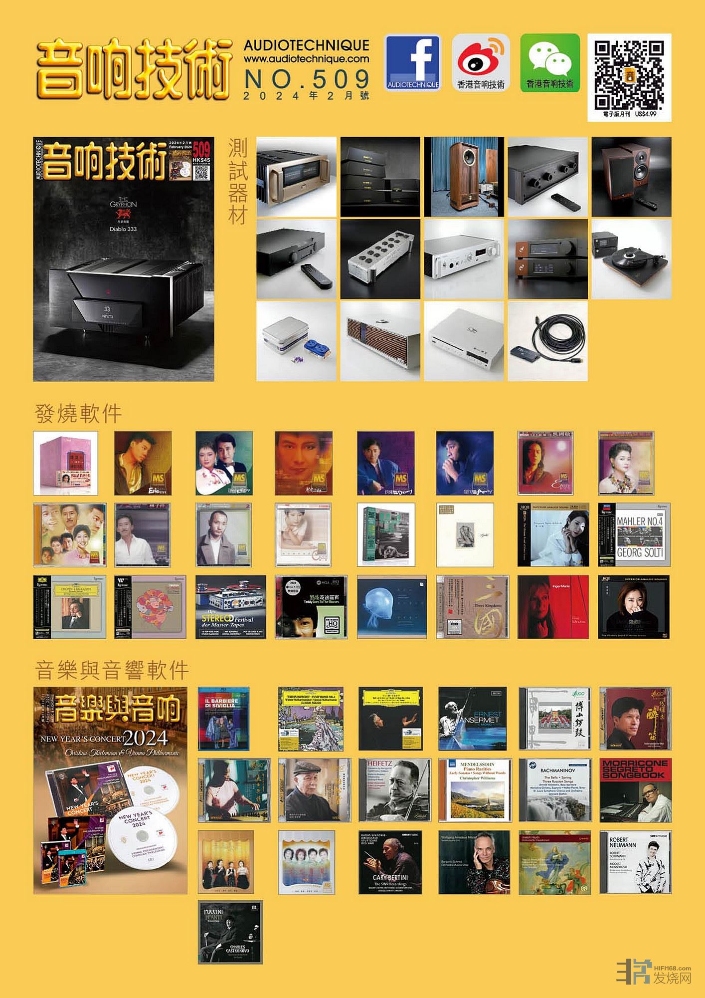 CD特稿 : 安塞美的精彩单声道年代 、新年新气象,雨果乐缤纷、Heifetz与好友于荷里活的几个代表性演奏、技巧精湛,富有表现力的孟德尔逊《无言之歌》、声情并茂,妙不可言的拉赫曼尼诺夫作品:钟声及几首声乐乐曲 、《Morricone Segreto Songbook》专辑、四位歌后名伶:吴莺音.刘韵.静婷.崔萍 「金光灿烂耀舞台」,令人难忘的现场记录。