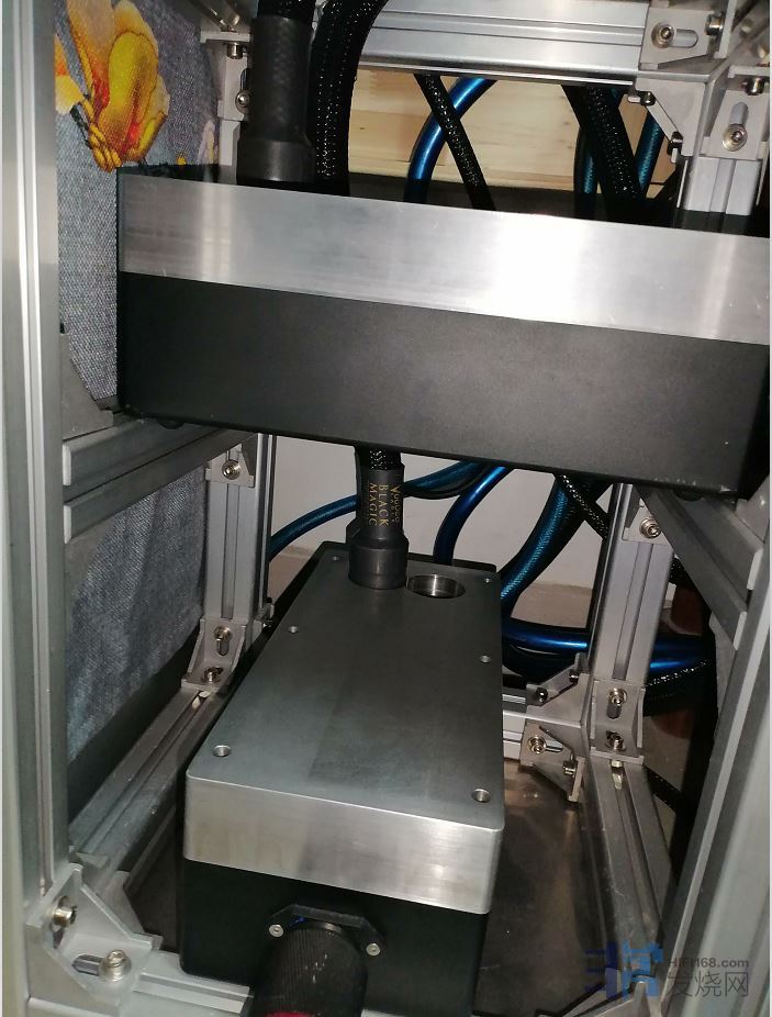 厚25毫米铝合金机箱,全部自己设计,自己加工,特别是机箱里面安装主板的安装板, 使用15毫米紫铜板 打孔安装,外部都是25毫米厚的铝合金板氧化涂层 美观一下 ,机箱重160斤