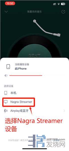 注:重新启动Nagra Streamer后手机或平板电脑的网易云音乐程序可能需要先彻底关闭再重新打开,不然就算是已经连接了但也是播放不了。