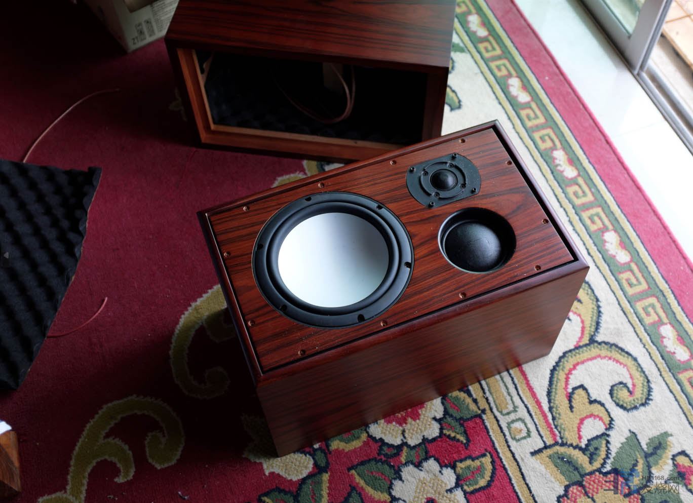 这对音箱设计上比较简陋,可能考虑它实际工作是在小房间,外观上没有太多要求,而且这对喇叭可能会归还朋友,箱体就没费太多心思做设计了。