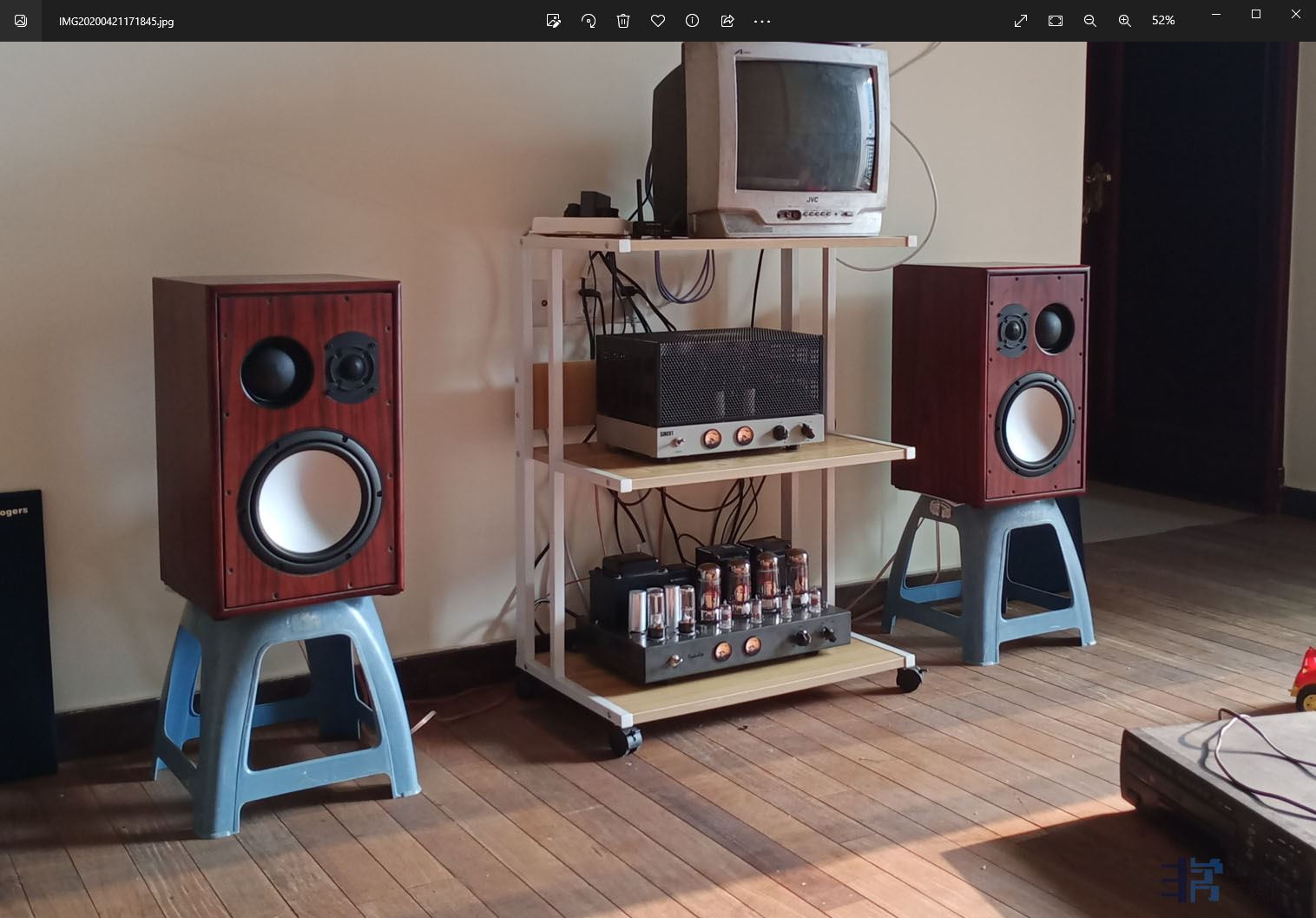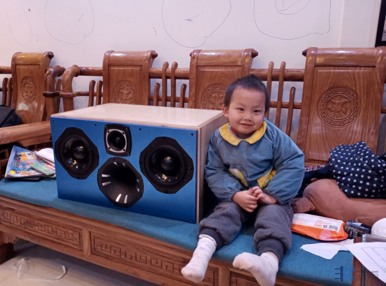 二娃出生了,伴随着这台收藏很久的陈年拉菲尔2A3小胆机,想着省点钱,也熟悉了英系传统书架箱的优缺点,干脆也做一套改良型书架音箱助助兴,利用了现代KH310的中高音单元,和JBL的JS8J低音单元,复古的调教手法,做了一对这样的8英寸3分频书架箱。自娱自乐,不知不觉的,一转眼,娃就会走路了,回想当时,家里还算整洁,父母也仍年轻,可以花好多时间琢磨自己喜欢的音响。