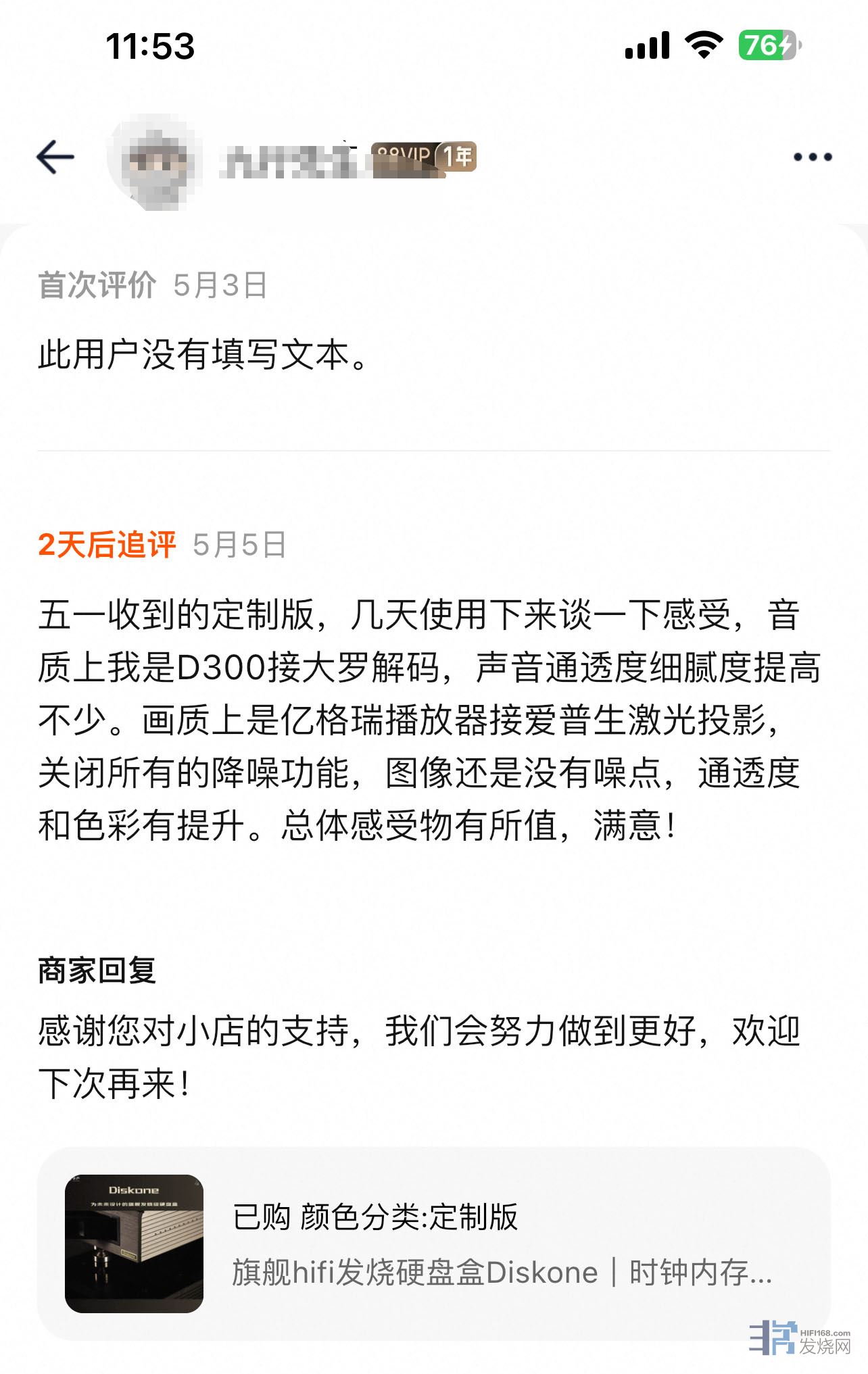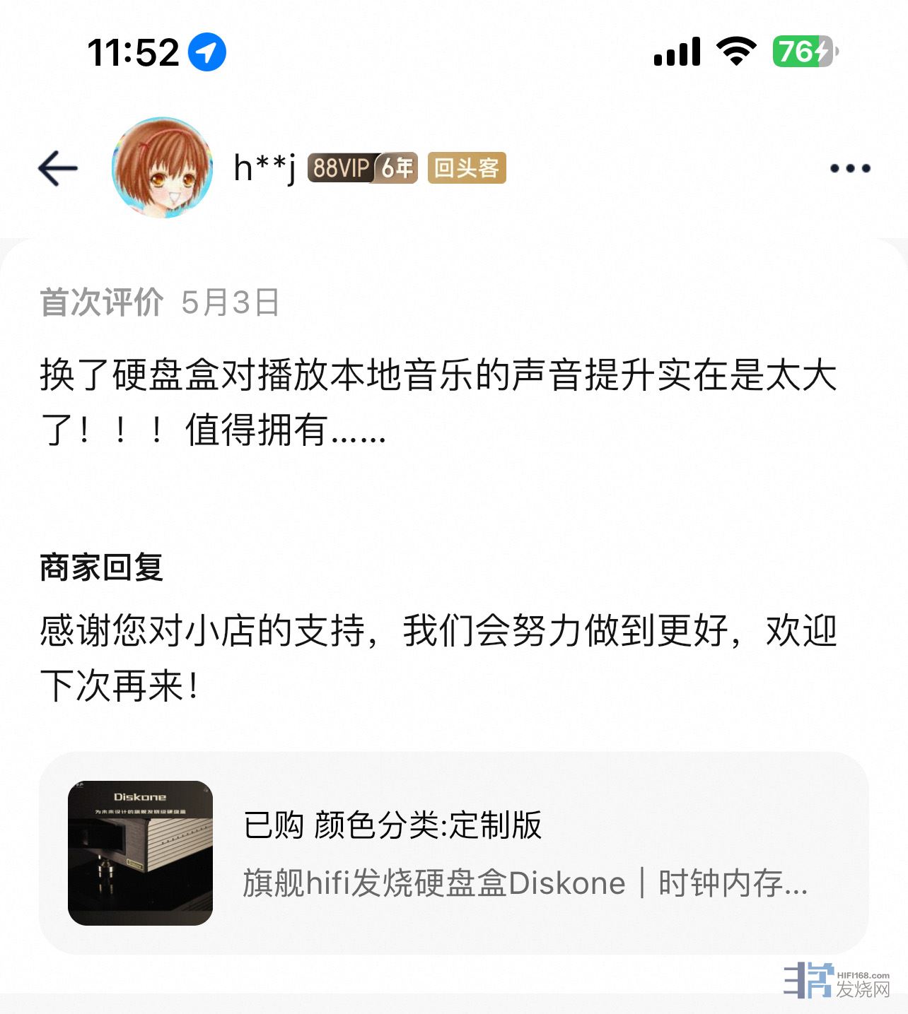 音质方面没得说,普遍好评,目前收货的烧友中暂未收到任何一条音质不好的评论,在这里我们也感谢一下大家对我们享声的认可