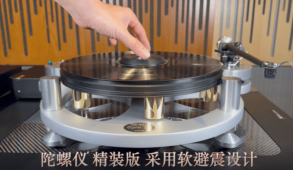 陀螺仪 精装版 搭载的阻尼匹配转盘,采用一种物理特性跟黑胶唱片非常相近的合成素材生产,底部装有6组预先经过人手打磨、抛光及镀金加工的黄铜柱,既可增加速度稳定性,同时将重心降低。