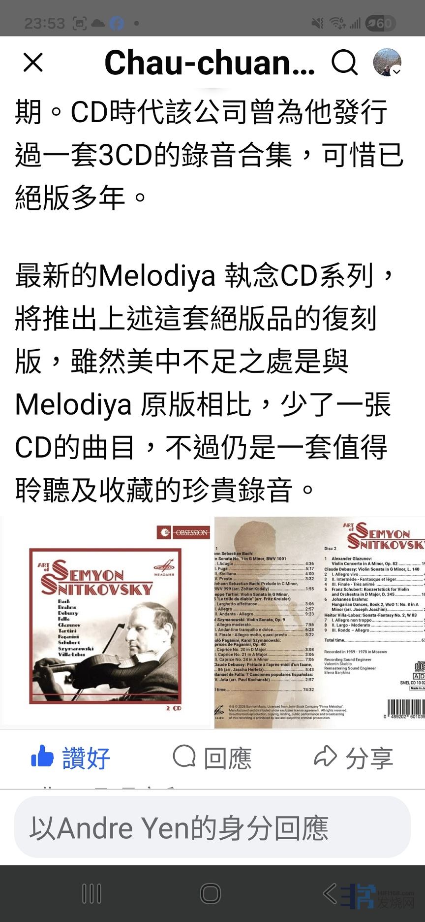 延伸樂讀:https://weibo.com/2518372443/5259409800303027https://weibo.com/2518372443/5259351976576993 ANDRE 发表于 2026/1/27 18:45:22 酒香莫怕巷子深。2月中旬新品(之一),未演已先轟動到寶島。圖文載自1月27日台灣的fb(為文者是小提琴專業人士)