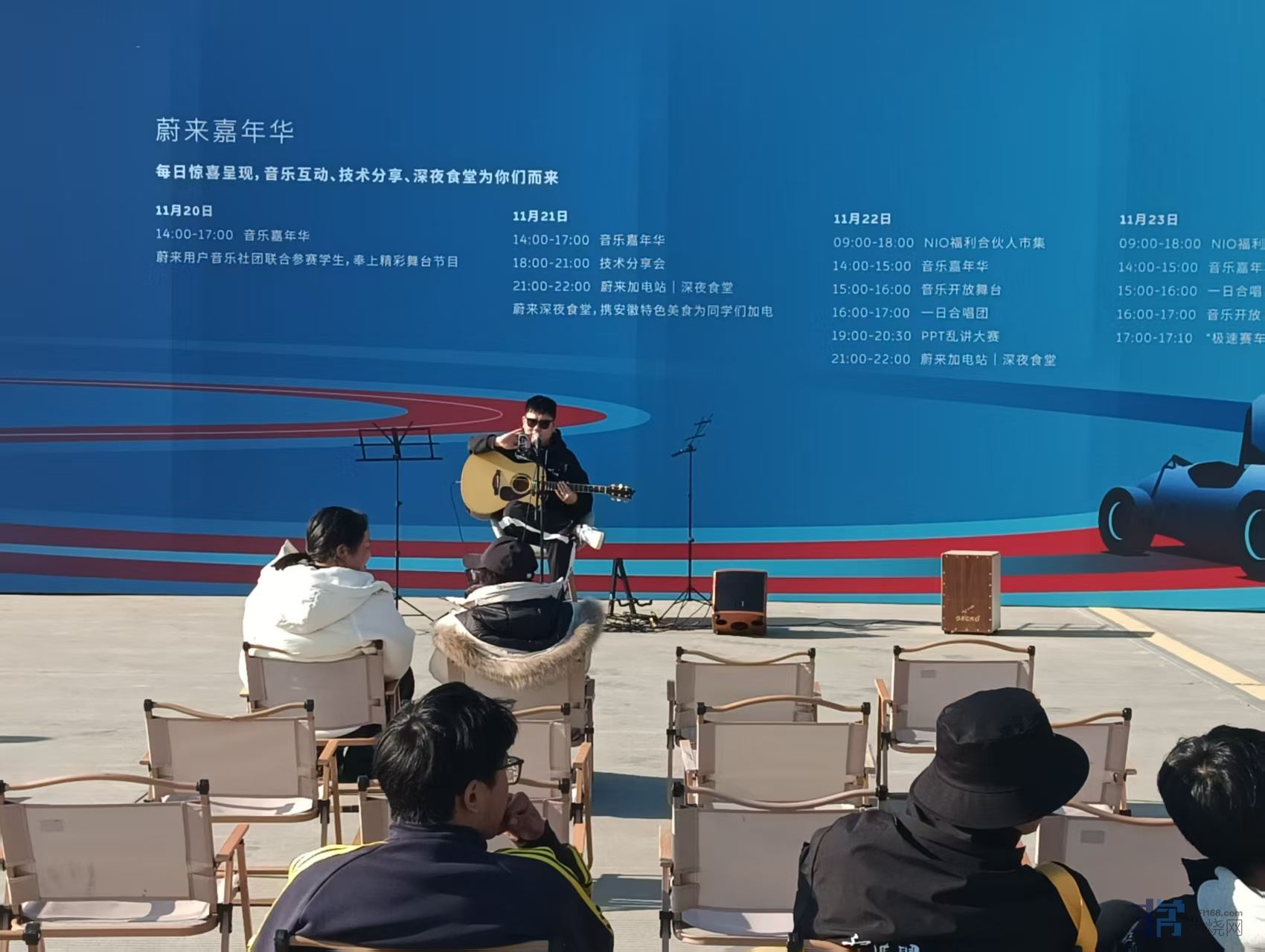 比赛现场,蔚来的展厅外,吉他弹唱